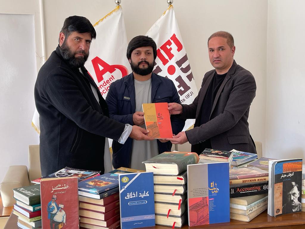 یما عزیزی از فعالان رسانه یی کشور ۱۵۰ جلد کتاب مطالعه وی را تحت عناوین مختلف به انجمن ژورنالیستان آزاد افغانستان اهدا نمود
